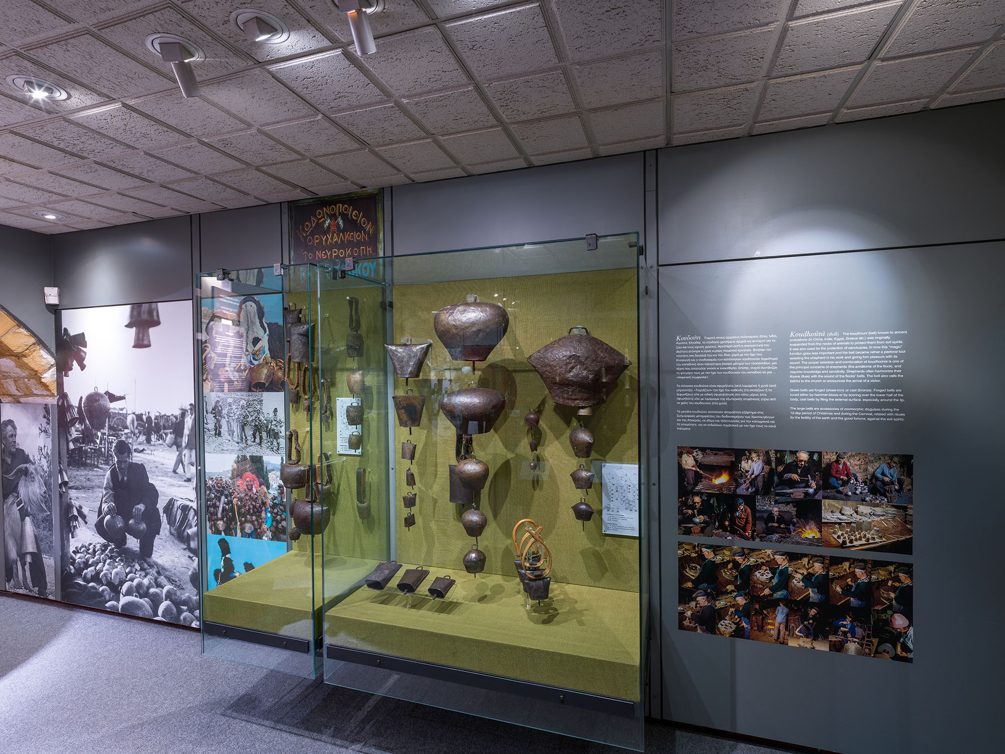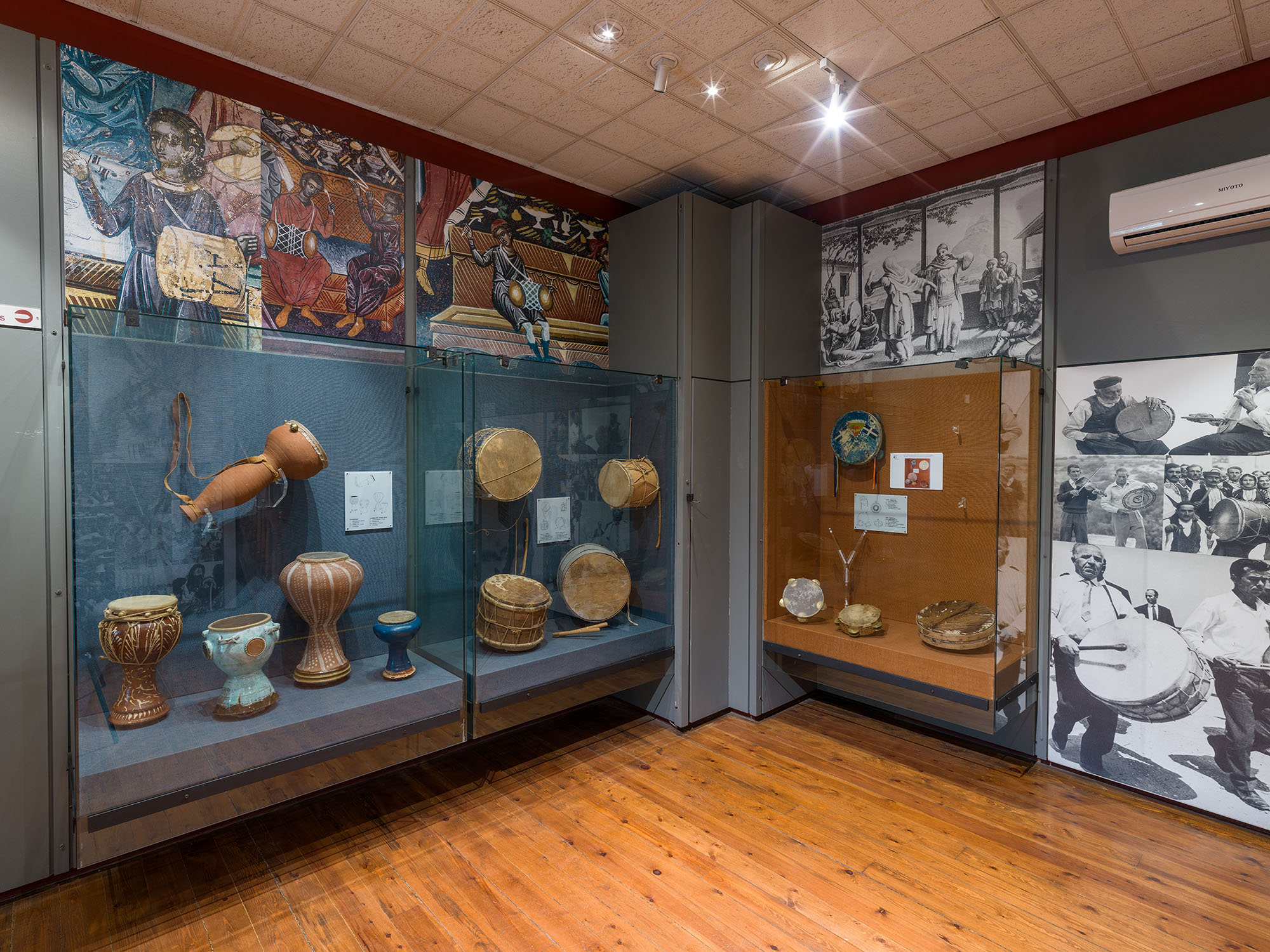 Εκτίθενται μουσικά όργανα και ηχητικά αντικείμενα από ολόκληρο τον Ελληνισμό.